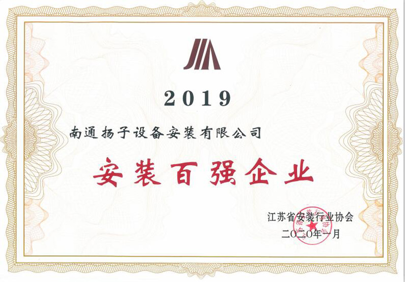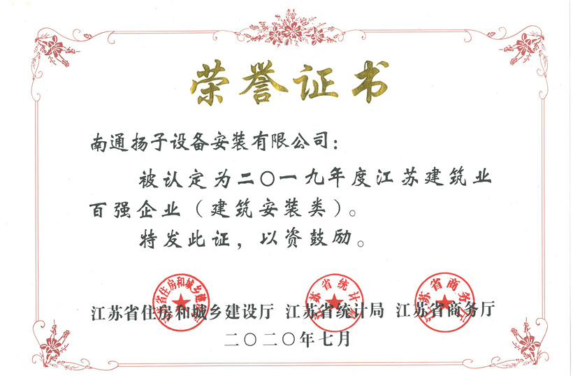 公司被省住建廳、省統計局、省商務廳評為2019年度江蘇建筑業百強企業