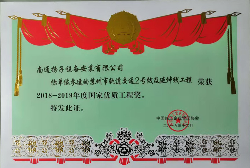 蘇州市軌道交通2號線工程獲國家優質工程獎