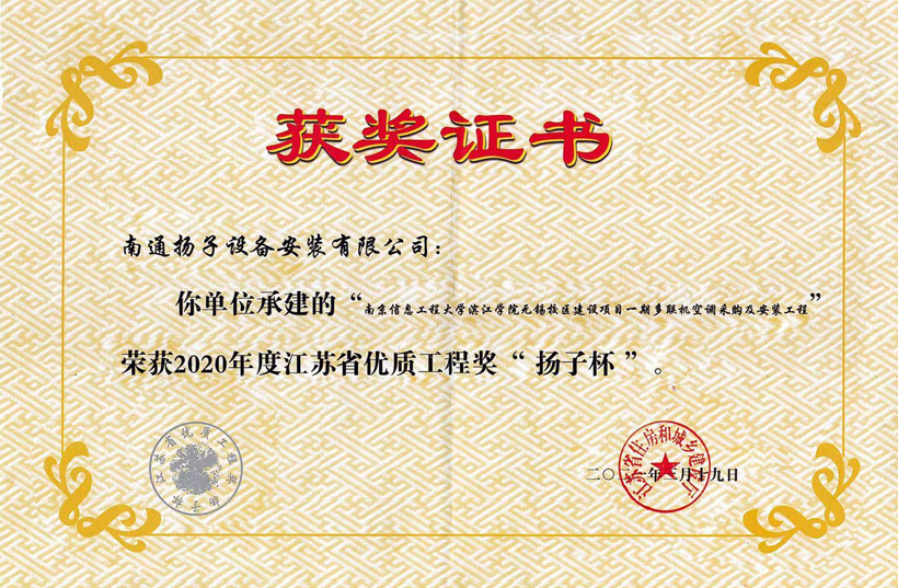 開發區人民醫院機電安裝工程獲2019年度江蘇省優質工程獎“揚子杯”