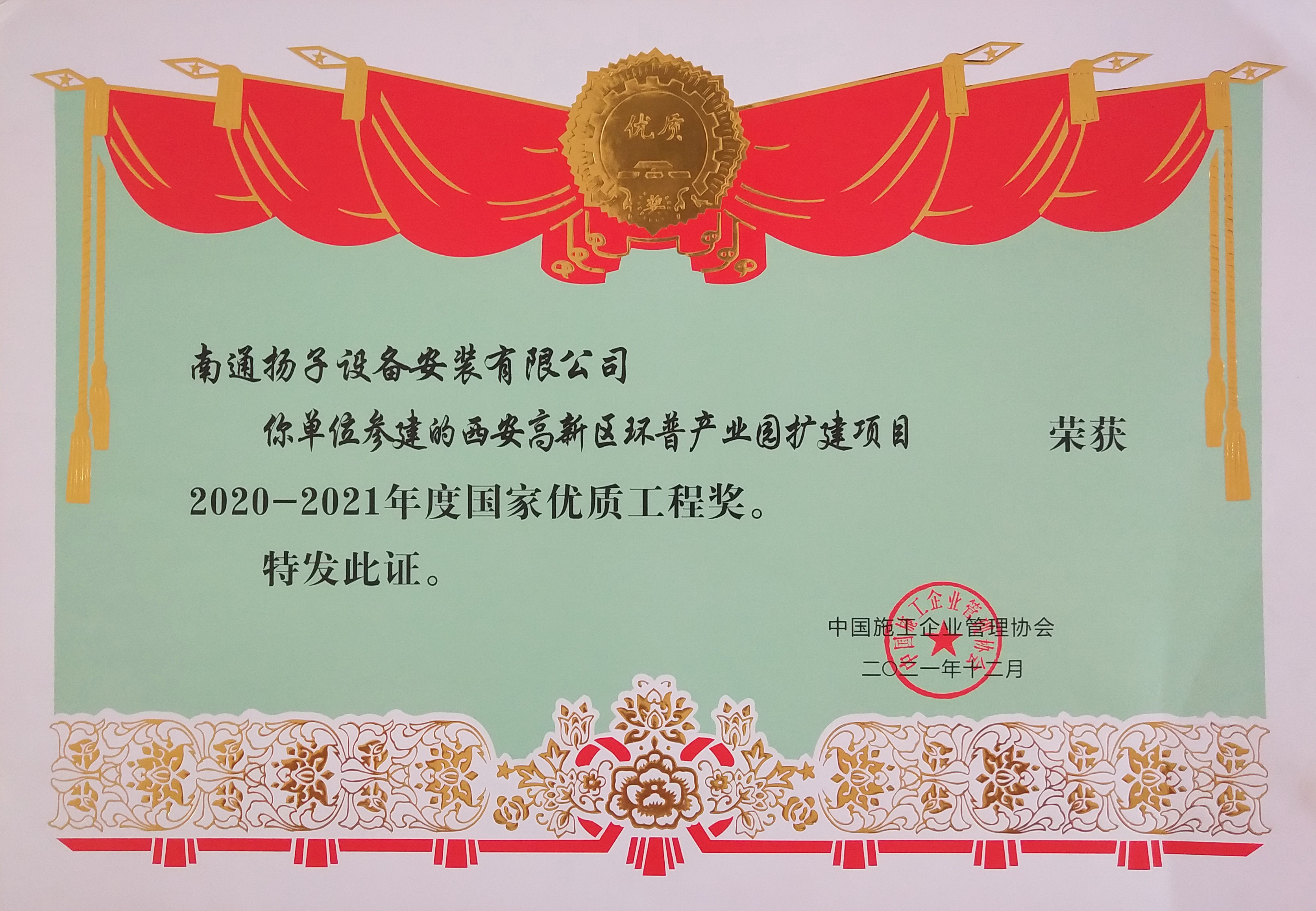 參建的西安高新區環普產業園擴建項目獲2020-2021年度國家優質工程獎